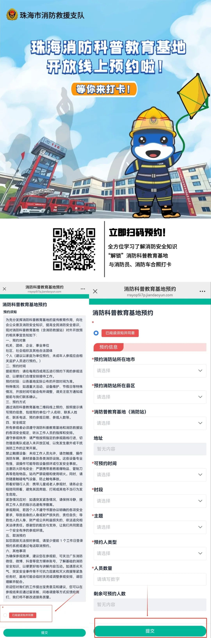 珠海各消防科普教育基地、消防救援站将结合执勤实际做好开放工作,期间如遇警情等特殊情况,救援人员将根据实际做相应调整,敬请谅解!