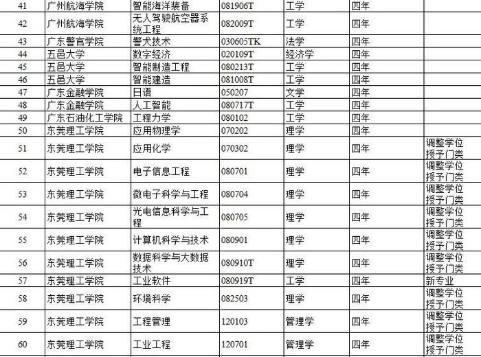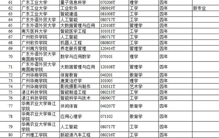 从具体新增专业数量来看,此次新增和调整数量最多的是东莞理工学院,共11个专业。中山大学其次,共新增7个专业。肇庆医学院新增了6个专业,广州航海学院、广州应用科技学院均新增5个专业,广州理工学院、华南理工大学和惠州学院各新增4个专业。