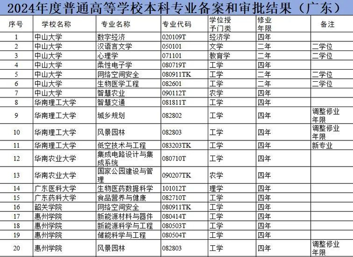 4月22日,教育部公布2024年度普通高等学校本科专业备案和审批结果,记者梳理发现,广东共有44所高校新增和调整的本科专业点共有113个。其中,4所高校各有1个新增审批专业点。