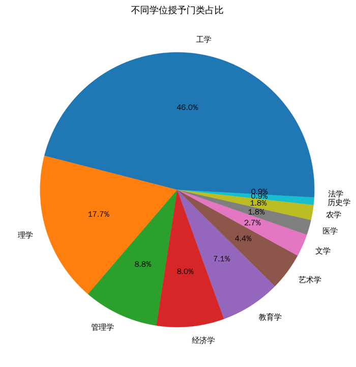 在广东今年新增的113个专业点的专业,分布在工学、艺术学、文学、教育学、理学、管理学、法学、经济学、农学共11种学位授予门类。记者初步梳理发现,其中,工学和理学占比超过60%,占比最高的工学,占近半壁江山。