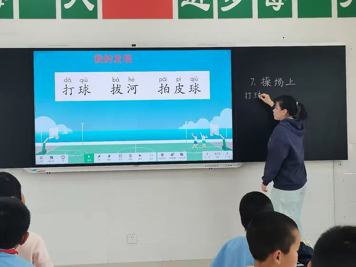 《操场上》的字词教学中,杨老师与孩子们学习、书写、体验与体育运动相关的生字、词语,让孩子们直观感受到运动的魅力;认识到不仅要实现“文明其精神”,更要做到“野蛮其体魄”。我们愿每个孩子都能拥有强健的体魄,支撑起自己对美好生活的向往与追求。