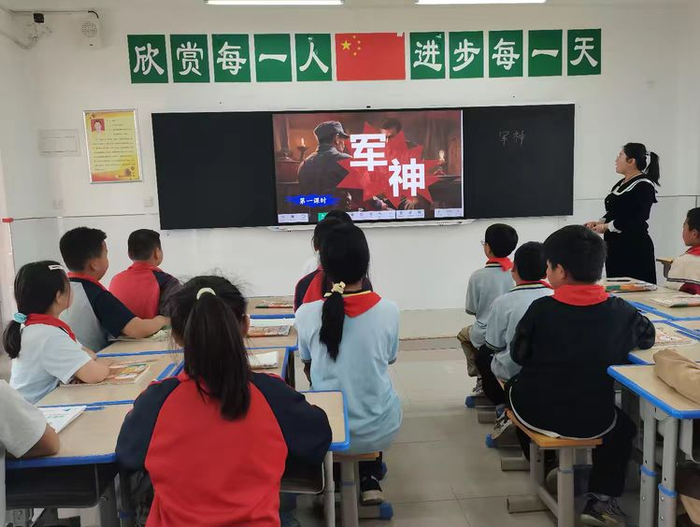 荣老师和孩子们一起朗读《军神》。互动中,荣老师引导孩子们了解刘伯承的英雄事迹,深刻的体会到“军神”的力量与坚强,更激发了他们对国家和民族的热爱与激情,愿他们在追逐梦想的路上勇往直前,用实际行动书写属于自己的精彩篇章!