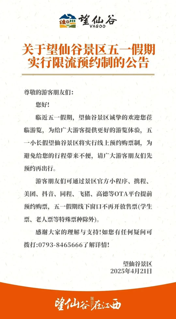 实行限流预约制!江西一景区宣布了