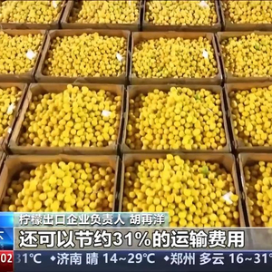 柠檬出口企业负责人 胡再洋:出口到越南的柠檬从以前的6天缩短到现在的2天,提升了运输时效,还可以节约31%的运输费用。