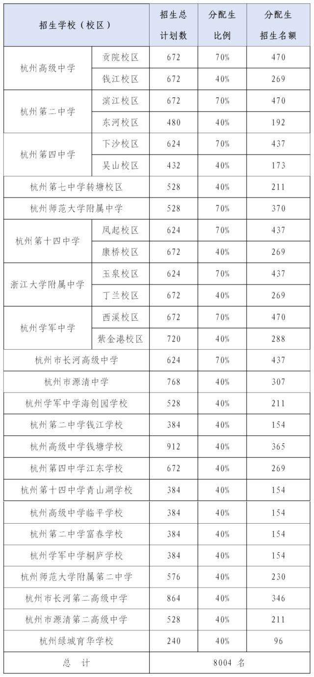 注:1.上表中的“招生总计划数”不含中外合作办学项目班、特色班、职普融通试点班等招生计划数,也不含面向萧山、余杭、临平、富阳、临安5区的招生计划数。
