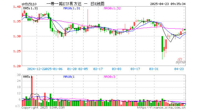 一带一路ETF易方达(515110)业绩比较基准为中证国企一带一路指数收益率,管理人为易方达基金管理有限公司,基金经理为刘树荣,成立(2019-11-06)以来回报为31.91%,近一个月回报为-1.85%。