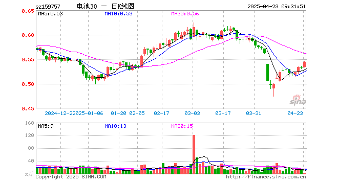 电池30ETF(159757)业绩比较基准为国证新能源车电池指数收益率,管理人为景顺长城基金管理有限公司,基金经理为张晓南,成立(2021-07-21)以来回报为-46.72%,近一个月回报为-9.83%。