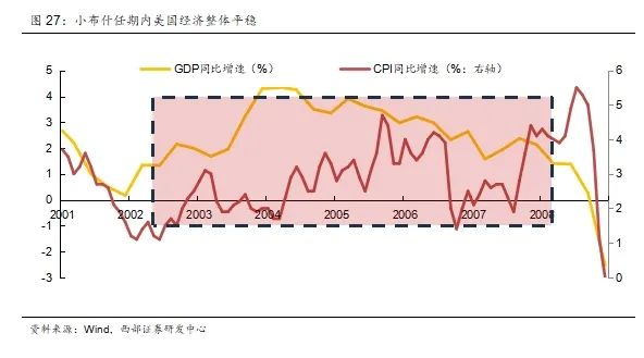 小布什任期:短期提振美股,美债利率下行,美元维持高位;