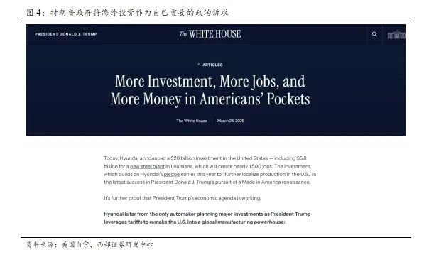 特朗普所推动的“对外加关税、对内减税”并非相互孤立的两套政策,而是一体两面的战略组合,构成其执政逻辑的“中轴线”。具体而言,我们认为关税作为一种对外的经济手段,主要作用在于提高进口产品成本,迫使跨国企业重新评估其在全球范围内的生产布局,尤其是对长期依赖其他低成本国家的制造业形成直接压力。而与此同时,减税政策则是在国内提供更具吸引力的营商环境,通过降低企业所得税和资本利得税来鼓励企业将投资和生产留在本土。