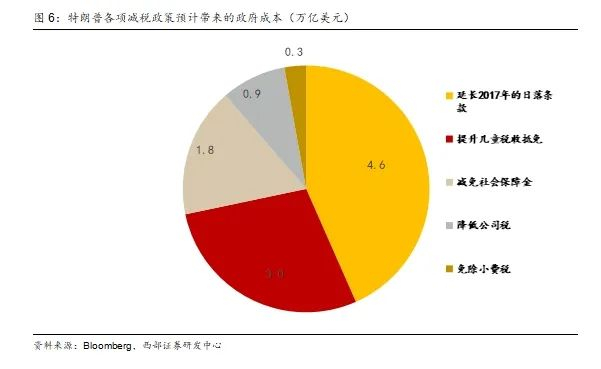3.针对特定的产业进一步加大利息抵扣政策推行。特朗普减税政策推出的一大重要目的便是吸引海外产业回流。而对于部分重点产业如汽车、科技等传统制造业,我们认为特朗普政府或会推出进一步的税收抵免政策进一步推动其在美国国内发展。这些内容相较于直接下调税率对于政府赤字压力影响较小,且可以更针对性的实现产业回流,我们认为其推出概率较大。特朗普也曾多次表示将汽车方面的贷款利息抵扣考虑在新的减税政策当中。