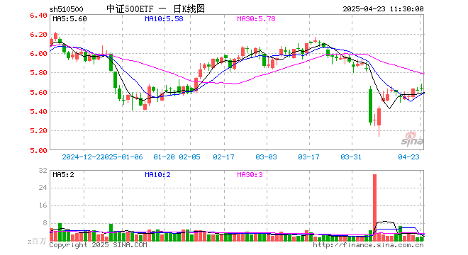 4月23日,截止午间收盘,中证500ETF(510500)涨0.27%,报5.632元,成交额9.53亿元。中证500ETF(510500)重仓股方面,江淮汽车截止午盘涨1.66%,光启技术涨0.63%,胜宏科技涨0.92%,东山精密涨5.19%,华工科技涨1.23%,润和软件涨0.51%,赤峰黄金跌8.59%,四川长虹涨0.92%,芯原股份涨1.28%,瑞芯微跌0.04%。
