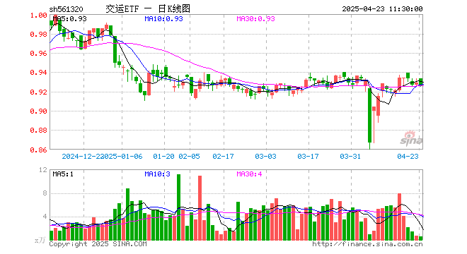 4月23日,截止午间收盘,交运ETF(561320)跌0.32%,报0.926元,成交额46.21万元。交运ETF(561320)重仓股方面,京沪高铁截止午盘跌0.68%,顺丰控股跌0.02%,中远海控涨0.71%,大秦铁路跌0.44%,上海机场跌0.37%,中国东航跌1.06%,南方航空跌0.35%,招商公路涨0.47%,中国国航跌0.55%,春秋航空跌1.11%。
