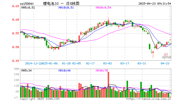 4月23日,锂电池ETF(159840)开盘涨1.74%,报0.525元。锂电池ETF(159840)重仓股方面,比亚迪开盘涨6.25%,宁德时代涨1.87%,亿纬锂能涨0.55%,三花智控涨2.97%,华友钴业涨1.11%,赣锋锂业涨0.26%,格林美涨0.33%,欣旺达涨1.03%,国轩高科涨0.50%,先导智能涨1.20%。