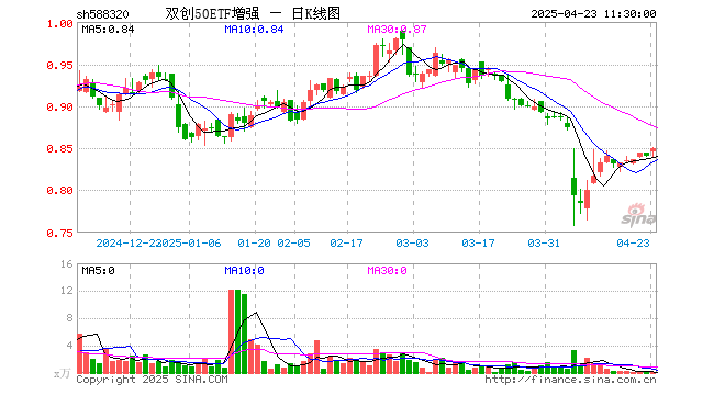 双创50ETF增强(588320)涨0.95%,半日成交额8.36万元