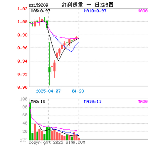 4月23日,截止午间收盘,中证红利质量ETF(159209)涨0.10%,报0.976元,成交额418.23万元。中证红利质量ETF(159209)重仓股方面,贵州茅台截止午盘涨0.13%,中国平安涨0.26%,中国神华跌0.31%,中国太保涨0.13%,水晶光电涨3.02%,山金国际跌6.68%,福耀玻璃涨1.63%,亿联网络跌1.27%,西部矿业涨0.52%,格力电器涨0.31%。