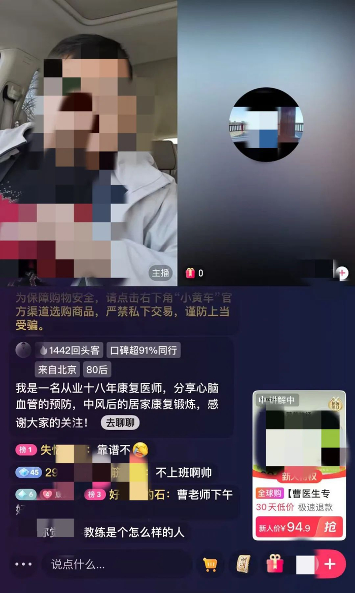 “我是一名从业18年的康复医师,分享心脑血管的预防,中风后的居家康复锻炼,感谢大家关注。”一位认证为“神经康复科曹医生”的主播在科普时,右下角随即弹出的购买链接标注“曹医生推荐款”——某品牌维生素胶囊,售价99.9元/3瓶。