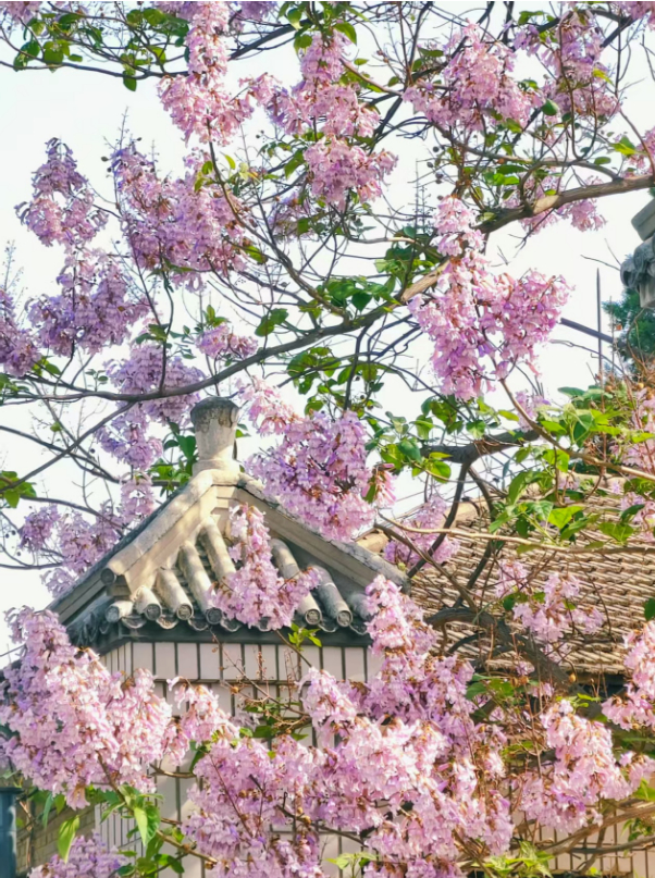 楸树缀满粉白花串,与淡紫泡桐交织成廊!北京这条胡同爆火