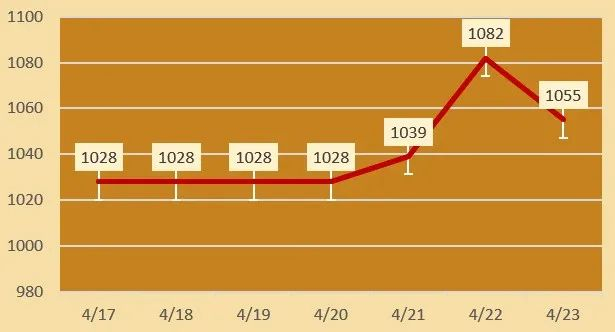 金价下跌27元!今日黄金价格行情(2025/04/23 10:45)