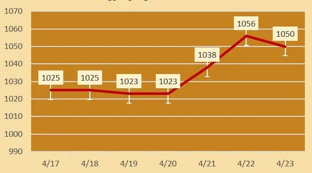 | 老凤祥 | 黄金价格 | 1050元/克 | 跌6 |