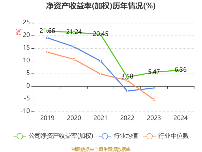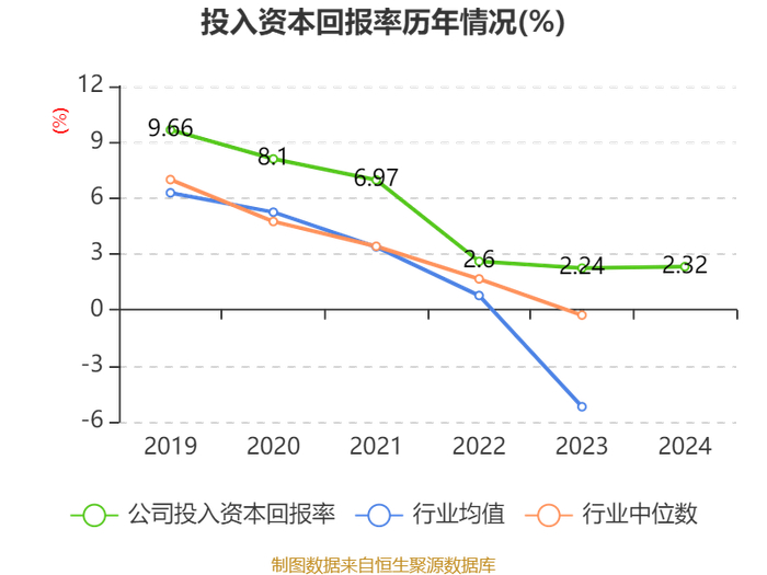 数据显示,2024年公司加权平均净资产收益率为6.36%,较上年同期上升0.89个百分点。公司2024年投入资本回报率为2.32%,较上年同期上升0.08个百分点。