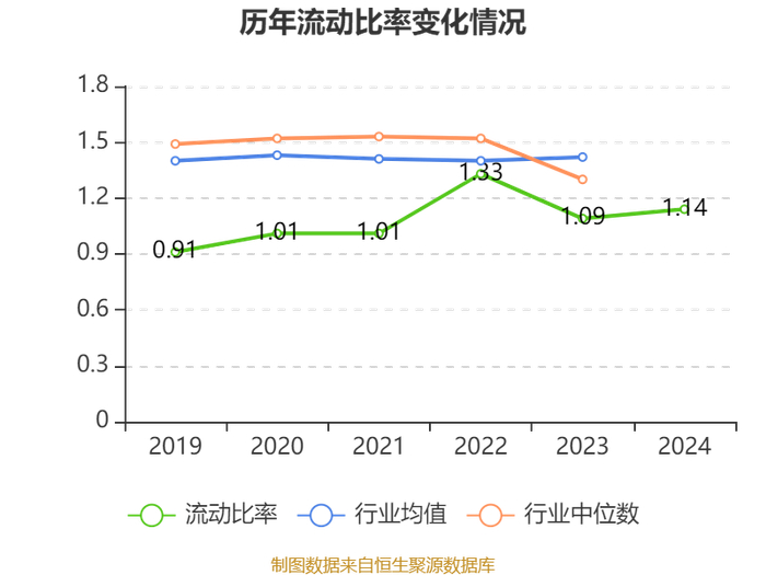 2024年,公司流动比率为1.14,速动比率为0.32。