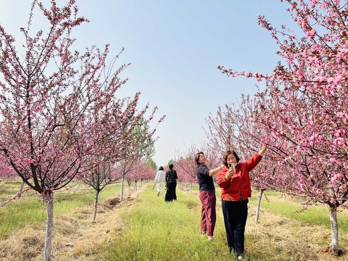 走进王各庄村绿叶园林绿化有限公司苗木基地,连片的海棠花迎风摇曳,粉白相间的花朵缀满枝头,游客们穿梭其间,拍照留念。该基地种植了八棱海棠、红叶榆叶梅、栾树等百余种观赏植物。今年以来,当地创新“农业+旅游”发展模式,将传统苗木种植转型为集观光、研学、休闲于一体的综合业态。