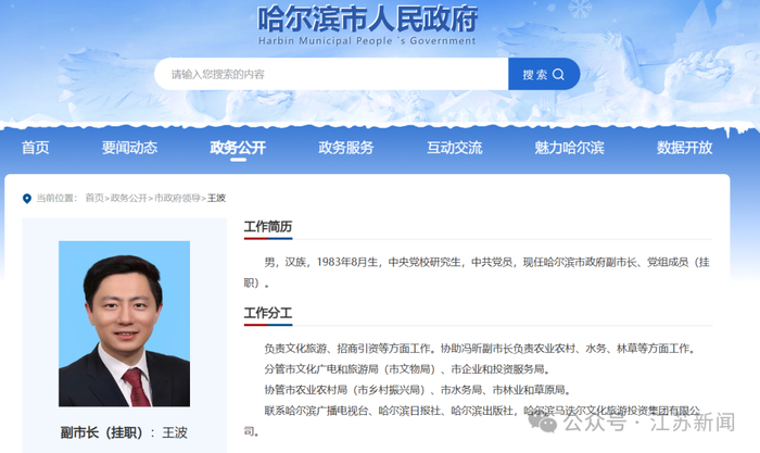 据“哈尔滨市人大”微信公众号消息,4月22日,哈尔滨市第十六届人民代表大会常务委员会第三十五次会议决定,任命王波为市政府副市长(挂职)。
