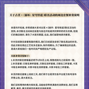 古茗ד崩铁”联名套餐缺货,古茗:已安排补货,最迟于6月6日上线