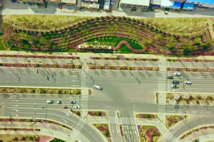 提升后,通过层叠式灌木与色块地被的精心搭配,构建出“城市生态画框”的景观效果,以增绿添彩的手法打造出“会呼吸”的城市绿脉,完美实现“步移景异、四季流光”的景观意境。