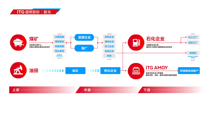 公司为产业伙伴提供 “ITG Solutions” 产业综合服务解决方案,围绕产业客户供需匹配、建 立通路、平滑波动、发展赋能、转型升级等核心诉求,提供专业化、定制化的解决方案,解决从 原料端到销售端的问题,为彼此创造更多的利润与发展空间。