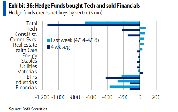 美银分析师表示,从具体抛售板块来看,金融、科技与工业首当其冲: