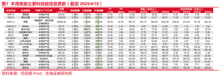 我们选取了较有代表性的部分美股科技股,并将相关信息更新如下。本周恩智浦(+1.16%)、德州仪器(+0.57%)略有收涨。