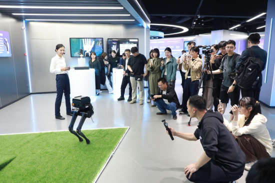 在无锡海归小镇,记者们与机器人现场互动 摄影 魏玉卿