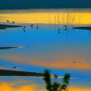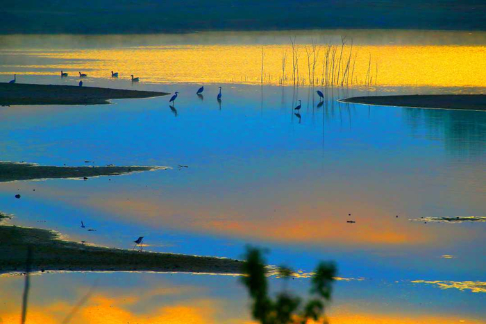 4月23日,山东省青岛市即墨区大沽河色彩斑斓,水鸟栖息,美不胜收。