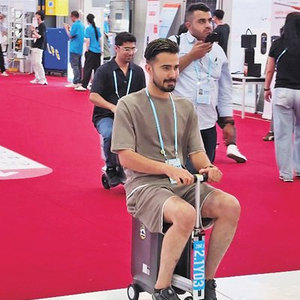 “企业将储物和代步功能相结合,推出了该产品。”爱尔威公司销售总监孙国说,企业已连续多年参加广交会,这款电动行李箱自推出后功能不断迭代升级,很受采购商和消费者欢迎。