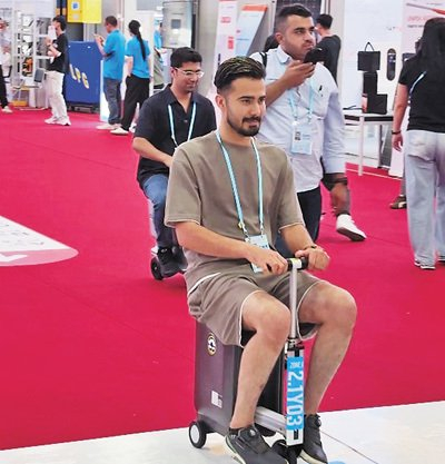 这款兼具储物和代步功能的电动行李箱,是江苏常州爱尔威智能科技有限公司带来的展品,能够一键伸缩“变身”,获得不少境外采购商青睐。