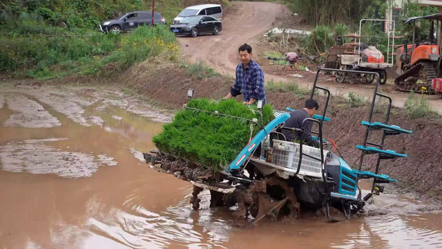 种植大户田永明说,无人机直播具有高效、精准的显著特点,单人单机每天能够完成200亩以上的播种任务 ,效率是传统人工播种的10倍以上,且能实现精准播种、均匀分布,省去了育秧、移栽等繁琐环节,极大地节省了人工成本,降低了劳动强度,提高了生产效率。然而,无人机直播并非适用于所有地形。对于一些地势起伏较大、形状不规则或者存在较多障碍物的田块,无人机难以进行有效作业。在这些区域,工作人员采用了传统的机器插秧方式。