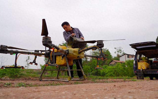 4月22日,大足区万古镇升斗村连片农田里呈现出“人机协同”的春耕盛景,2台高速插秧机往返穿梭,不到1小时便完成4亩地的栽插。同时,2架无人机一边将稻种均匀播撒至平坦地块,一边对已播区域进行飞防作业,防治苗期病虫害。种植大户田永明介绍,这种“机插秧+无人机直播+飞防”的立体作业模式,让单日作业效率大幅提升。