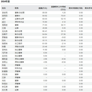 4月23日,盐田港最新高管薪酬曝光。根据2024年报数据,剔除独立董事、监事会主席、监事后,公司董事、总经理李安民年薪89.09万元最高;总工程师陆哲炜年薪61.09万最低。