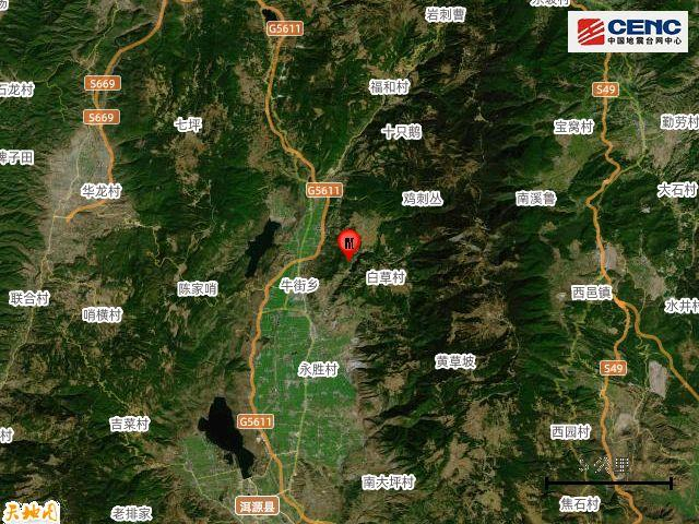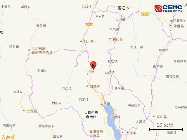 速报参数:据中国地震台网正式测定,4月23日18时44分在云南大理州洱源县发生3.2级地震,震源深度9公里,震中位于北纬26.27度,东经100.02度。