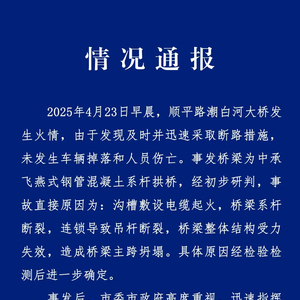 官方通报北京顺义潮白河大桥事故原因:电缆起火 桥梁系杆断裂