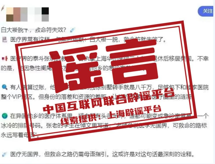 辟 谣“上海华山医院前院长客死他国”系利用AI造谣