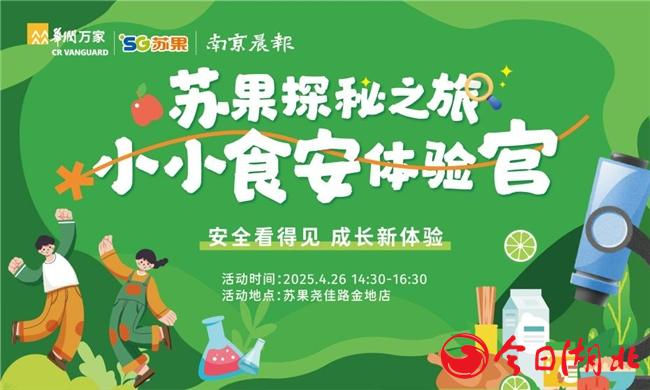 为普及儿童食品安全知识、增强家庭消费信心,苏果超市将于4月26日携手南京晨报举办“小小食安体验官·苏果探秘之旅”主题研学活动。活动将在苏果超市尧佳路金地店举行,通过沉浸式科普体验,多组亲子家庭将深入超市一线,探秘“舌尖上的安全”守护体系,直观感受苏果超市对食品安全的严苛管控与品质承诺。