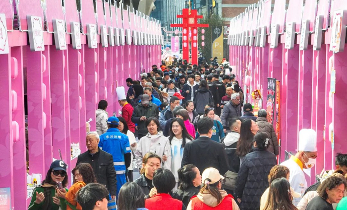 2025年3月17日,2025年“中华美食荟”活动在湖北省武汉市启动,活动以“乐享中华美食,共创美好生活”为主题,配套举办中华美食市集等特色餐饮促消费活动,培育餐饮消费新热点。图为当日,人们在活动现场选购美食。新华社记者 肖艺九/摄