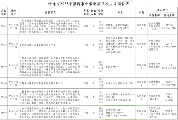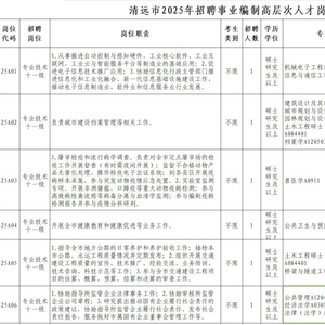 清远市招聘6名事业编制高层次人才