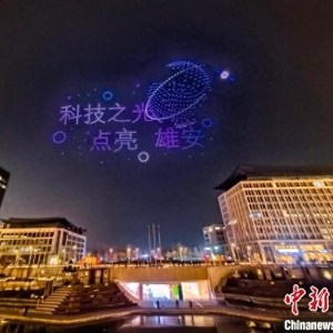 1月18日,“AI之夜 星空梦想”活动在雄安新区举行,汇聚人工智能领域的专家学者、行业领军人物、创新企业代表,共同探讨AI如何塑造美好未来。图为活动现场无人机表演。(资料图) 中新网记者 韩冰 摄