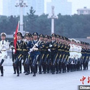 图为江西南昌八一广场升旗仪式现场,国旗护卫队迈着铿锵的步伐走向升旗台。(资料图)刘思伟 摄