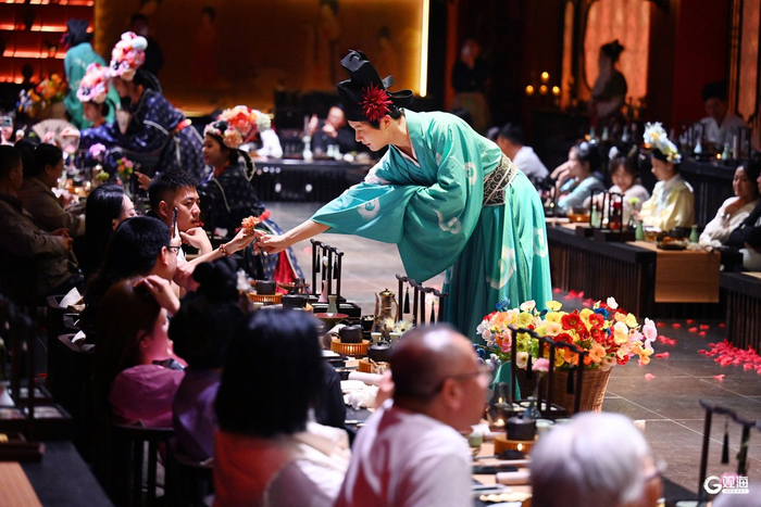美食是流动的历史,餐厅是沉浸的剧场,用餐是穿越的旅程。“终于理解了古人所说的‘歌舞升平,把酒言欢’的感觉。”在社交媒体上,一位网友这样写道。在千年文化盛宴中体验视听与味蕾的双重享受,不仅是一次美食体验,更是一次文化传承,轻松爱上国潮艺术。