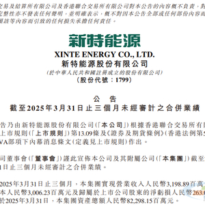 4月21日晚,新特能源发布2025年一季度业绩报告。