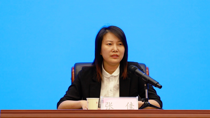在发布会上,荆门市商务局党组成员、副局长张佳从枢纽提能和通道建设两个方面对国际物流体系建设进行了介绍。